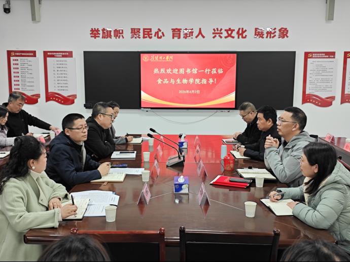 为主动融入学校学科建设和专业发展进程,持续提升文献资源保障与信息服务水平,更好地助力学校“达标申硕”工作,4月2日下午,图书馆副馆长王宗武、朱亚林带领资源建设、信息技术与学科服务团队,前往食品与生物学院开展走访交流,把学科服务直送科研一线,与师生面对面沟通需求、推介资源。