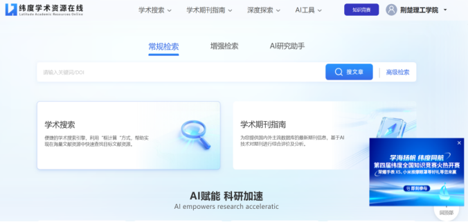 “纬度学术资源在线”是集期刊导航、期刊分析、论文检索获取三位一体的创新服务平台,主要包括学术期刊指南和学术搜索两部分。